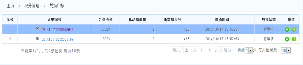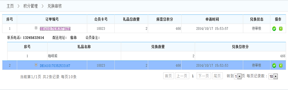 2.通過(guò)審核:點(diǎn)擊通過(guò)審核后,會(huì)員將得到禮品 將會(huì)扣減會(huì)員積分