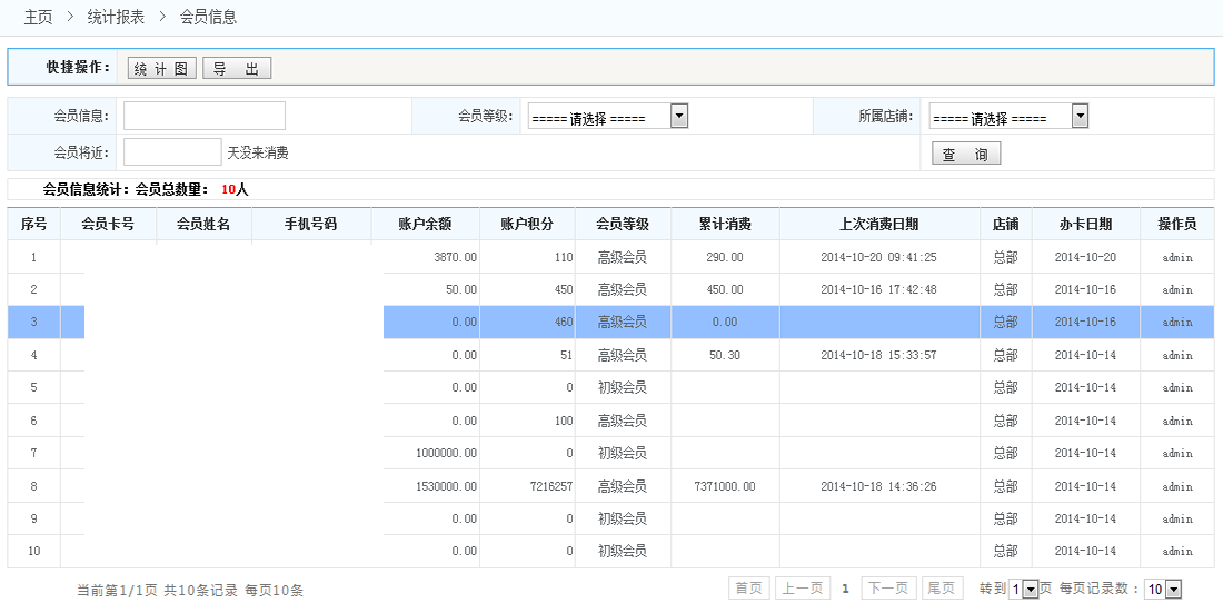 五通一卡通云會員管理系統(tǒng)會員信息統(tǒng)計
