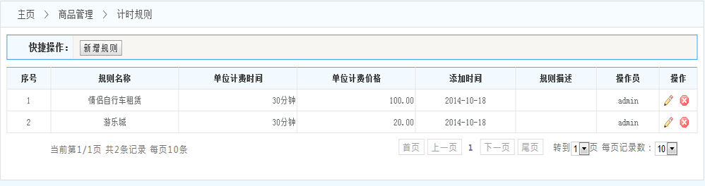 規(guī)則列表:展示系統(tǒng)內(nèi)設(shè)置的所有的規(guī)則 (操作一欄 可以對每條規(guī)則進(jìn)行修改和刪除 )